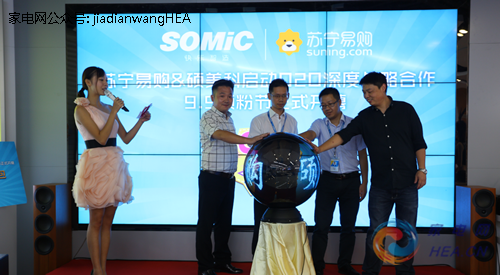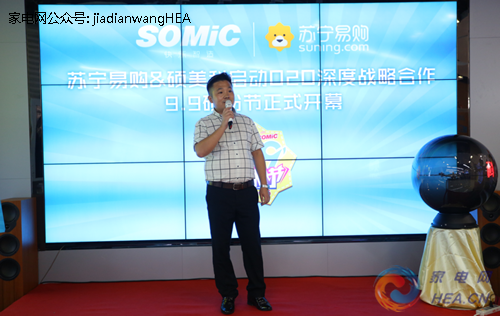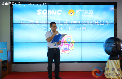 伴随着硕粉们的期盼与掌声,仪式于14:15分正式开始,首先上台致辞的苏宁云商广州大区营销总监卢剑先生提到,9月9日是苏宁易购与硕美科开正式开启O2O深度战略合作伙伴关系,打造全新“互联网+”合作模式非常重要的日子,硕美科集团营销中心总经理刘备军致辞时也表示,双方此次战略合作的牵手,仅仅是完成了合作的第一步,未来双方将在赛事合作、粉丝开发、大数据营销等方面开辟更多的深度合作模式。