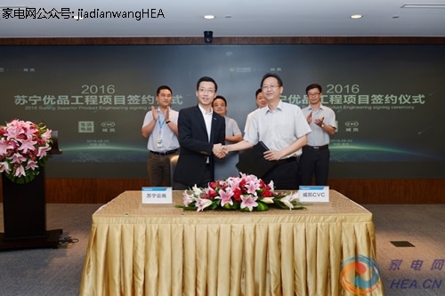 家电网-HEA.CN报道:8月3日,苏宁易购与威凯认证检测有限公司(以下简称威凯CVC)在苏宁总部联合召开“2016年苏宁优品工程项目启动会”,会上,双方共同签订“苏宁优品工程战略合作协议”,为大众选购小家电类产品架起一杆放心秤。