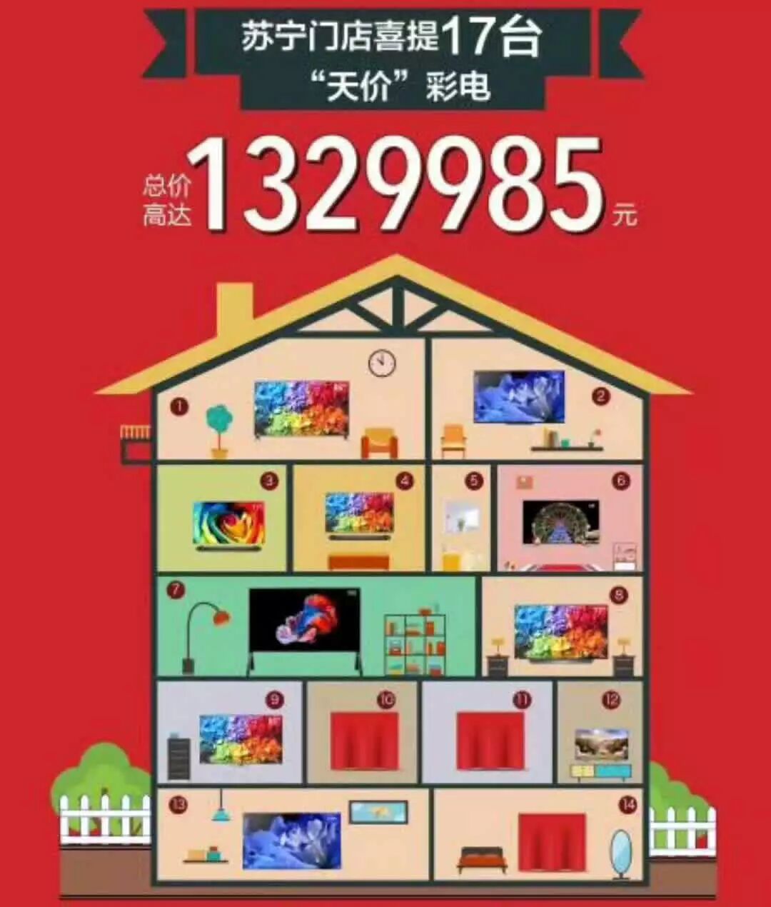 苏州某土豪在苏宁易购一次性,交费购买十七台电视机,其中