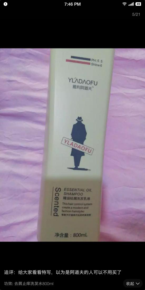 一位用户在购买后才发现该品牌并非正品,他在评价中晒出商品照片,写道:给大家看看特写,以为是阿道夫的人可以不用买了。