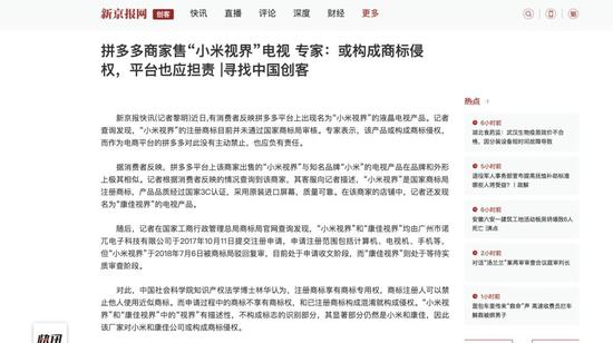 北京时间7月26日晚登陆美国纳斯达克的社交电商“拼多多”平台上,出现了“碰瓷”小米的“小米视界”,几乎是“营养诀线”的现代电商翻版。