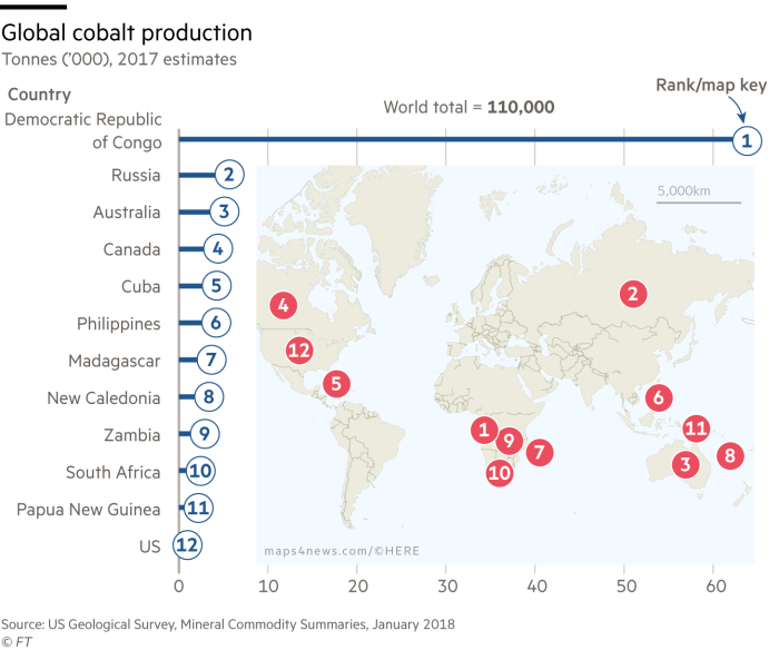 电池中用到的金属占了整体成本的四分之一。虽然美国爱达荷、阿拉斯加和澳大利亚都发现了新的钴矿,但它们投入生产要到 2020 年之后。