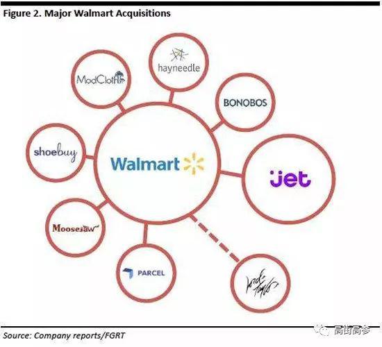 其中最引人注目的无疑是2016年8月收购的电商平台Jet.com,这场收购将沃尔玛从电商领域的寒冬带入了春天。