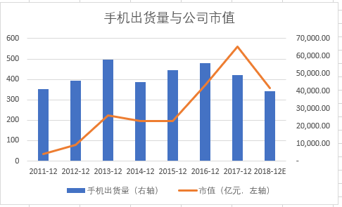 纵观其市值变动趋势,与手机出货量变动一致。在当前经济下行期,其是否能扭转颓势并不乐观。