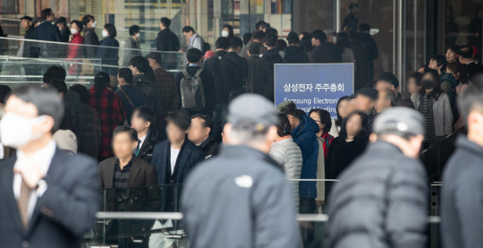 一位前去参加股东大会的股东李先生告诉第一财经记者,他曾参加过三次三星电子的股东大会,但这次的盛况“意想不到”。他说,今天参加股东大会的股东数量有近1000人,而三星方面准备的座位只有800余席,以至于有部分小额股东在门口排队近2小时才得以入场。此外,当天首尔雾霾较为严重,首尔的PM 2.5等级一度进入“较差”的阶段,排队时有许多人带起了口罩,当入场发生延迟时,有一些股东向现场工作人员进行抗议。