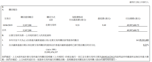 家电网-HEA.CN报道:6月10日晚间消息,小米集团(01810.HK)发布公告称,耗资4999.77万港元回购524.72万股股票,最高价9.49港元,最低价9.53港元。