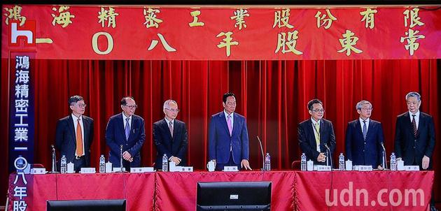 郭台铭说:“各位股东请放心,相信他们会做的比我好。”、“依据公司法208条我的发表稍后再和大家见面分享。”今日大会很不舍,但将由吕副总裁主持。