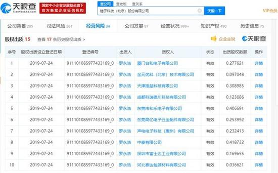 近日,据天眼查数据显示我们发现,锤子又新增14条股权出质信息,出质人均为罗永浩。罗永浩将持有的部分股份出质给厦门台和电子有限公司、天津旭堃科技有限公司、深圳市富士达工业有限公司、东莞市和乐电子有限公司、成都科瑞德川科技有限公司等多家电子科技企业。