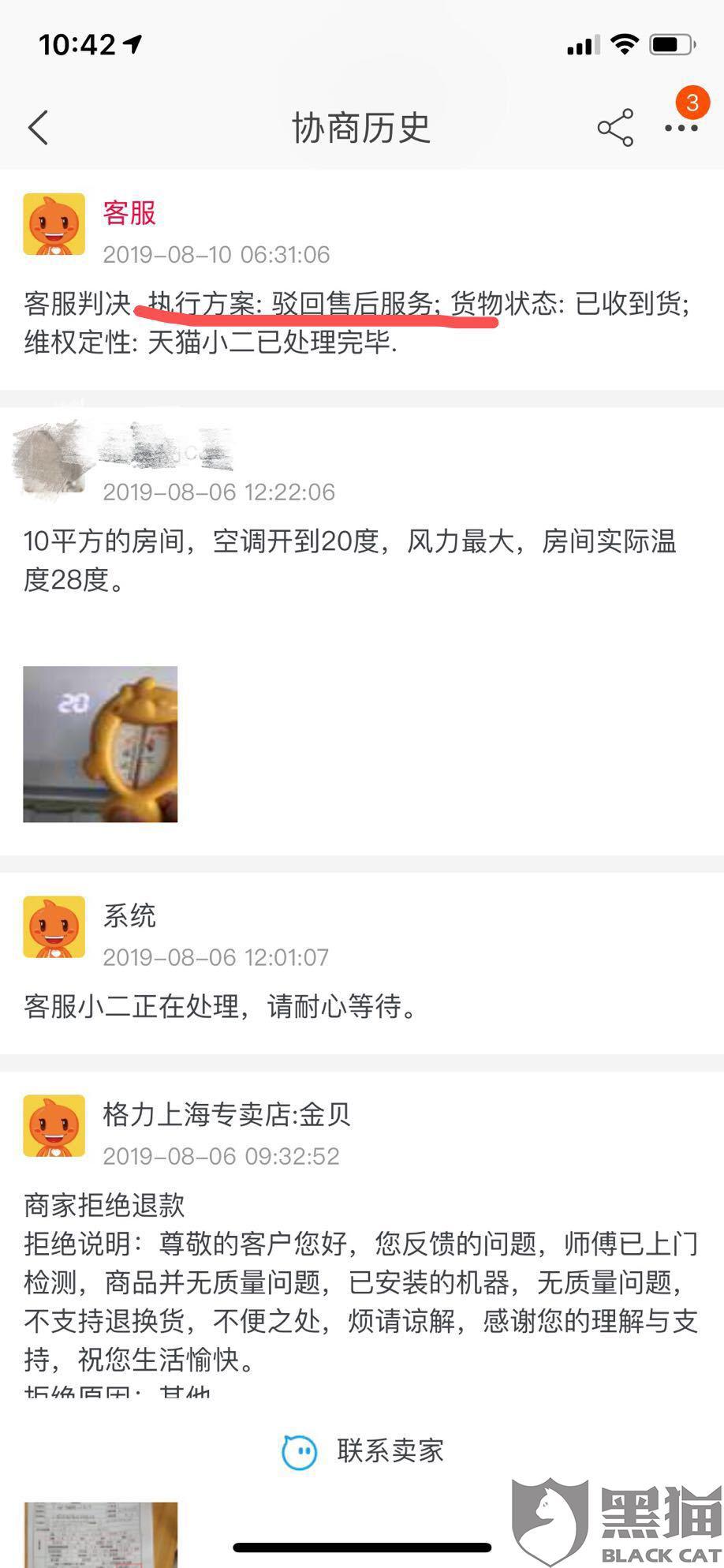 家电网-HEA.CN报道:投诉详情:天猫店“格力上海专卖店”