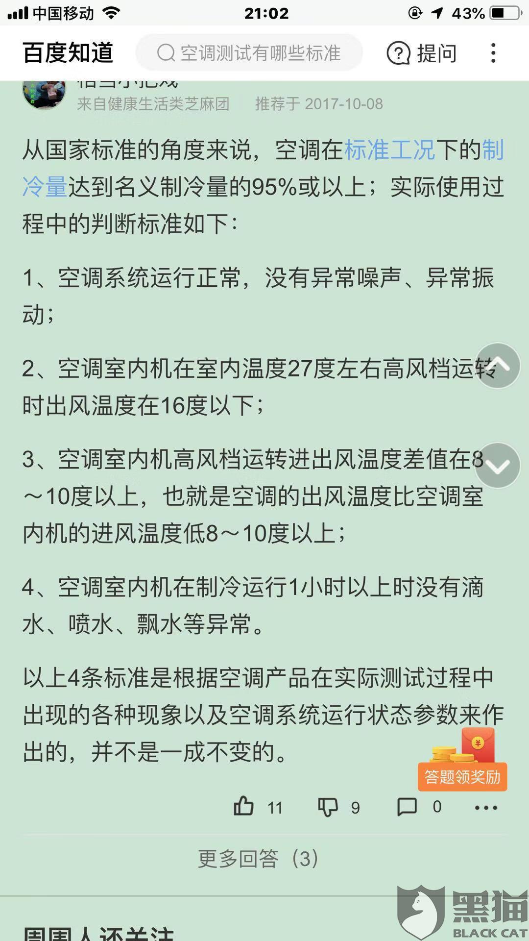 消费者“莫莫现在2019”在8月12日向黑猫投诉平台反映:“买个格力空调买来一堆糟心事儿,大1.5匹空调在10平米的房间开到20度,房间温度高达28度,明显的质量问题不制冷。可是格力上门检测的(也是安装)的机构却说空调没问题。 明明温度计就能证明不制冷,天猫不要求商家出具合格证明,却要求消费者去找鉴定机构证明。 晚上打电话给天猫客服转了主管处理,主管不要太横,说你自己拍照的温度计不算,人家商家给的表格盖章的才算[发怒],然后还挂我电话[发怒]”