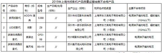 近期,上海市市场监督管理局对本市生产、销售的投影仪产品质量进行了监督抽查。本次抽查了15批次产品,经检验,不合格4批次。在这次检查中不合格4批次产品包括澳典S338\微影Z8\奥普达OPD-98\轰天炮86+W。