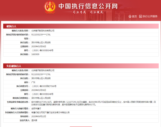 中国执行信息公开网显示,6月22日,北京锤子数码科技有限公司新增一条被执行人信息,执行原因为有履行能力而拒不履行生效法律文书确定义务。执行法院为深圳市南山区人民法院,执行标的168万元。