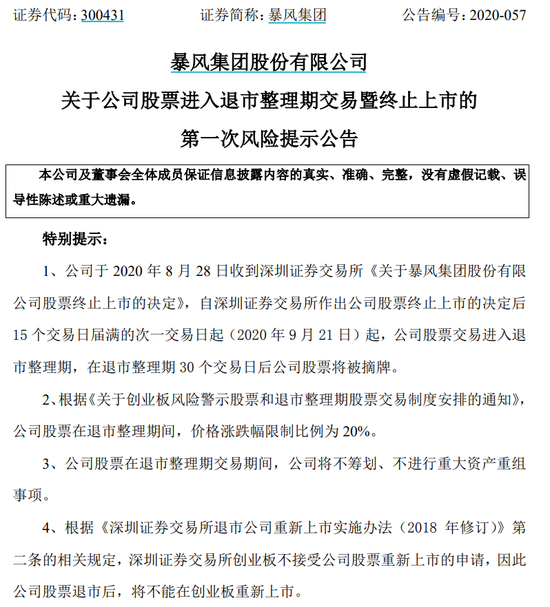 这让不少人吃惊,要知道,冯鑫入狱后,暴风集团每况愈下,9月21日,暴风集团更是正式进入退市整理期,股票简称更改为“暴风退”。