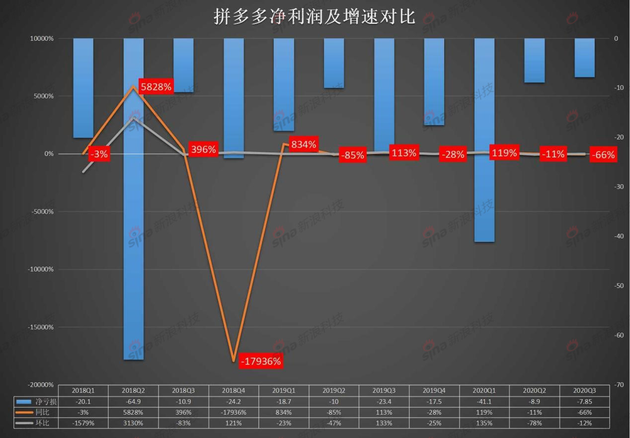 拼多多2020年第三季度财务报告显示,本季度拼多多营收为142.098亿元,同比增长89%。归属于拼多多普通股股东的净亏损为7.847亿元,去年同期净亏损为23.35亿元。非美国通用会计准则(Non-GAAP)下,归属于拼多多普通股股东的净利润为4.664亿元,去年同期净亏损为16.604亿元,首次实现单季度盈利。