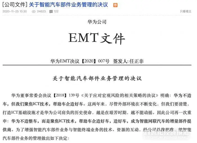 11月25日,华为在心声社区上发布了关于智能汽车部件业务管理的决议,对于汽车业务调整和是否造车做出了相应说明。