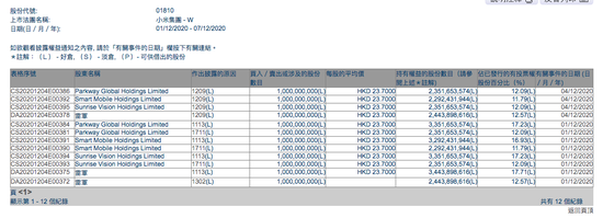 目前,港交所上传了三组权益披露表,第一组是 12月1日,相关大股东(雷军)签订卖出协议,大股东(雷军)的股数没有变化(因股份还未交收);第2组是12月1日,相关大股东签订认购了10亿股的协议,大股东(雷军)的股数会增加10亿股;第三组是12月4日交收日,大股东(雷军)的股数会减少10亿股,回到原本交易前的持股数。