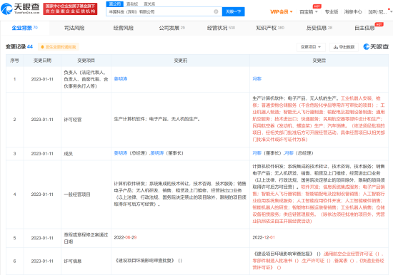 天眼查App显示,近日,丰翼科技(深圳)有限公司发生工商变更,姜明涛卸任法定代表人、董事长兼总经理,由冯黎接任;经营范围新增工业机器人(9.140, 0.05, 0.55%)安装、维修,通用航空服务,快递服务,民用航空器(发动机、螺旋桨)生产,智能无人飞行器销售,智能物料搬运装备销售等;许可信息新增通用航空企业经营许可证、快递业务经营许可证等。