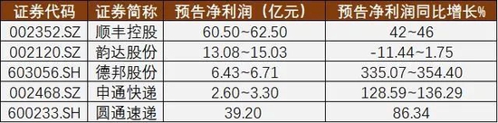 1月31日,披露全年业绩预告后的交易日,韵达股份喜提涨停,圆通速递、申通股份、德邦股份跟涨。