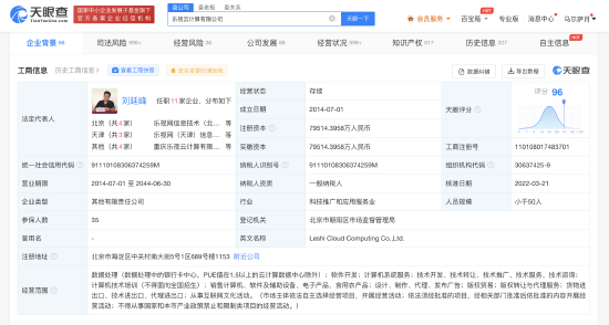 天眼查App显示,近日,乐视云计算有限公司新增一则被执行人信息,执行标的702万余元,关联案件为中国电信(5.700, -0.45, -7.32%)股份有限公司常州分公司与该公司相关服务合同纠纷,执行法院为常州市天宁区人民法院。