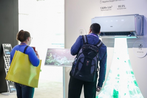在空调产品上,AI Air Manager 360°空调的关注点已不再局限于制冷和制热,而是同时管理温度、湿度、空气洁净度及含氧量。高精度传感器可实时感知环境变化,AI系统自动联动新风、负氧离子、运行模式及温湿度调节,并在学习用户使用习惯的基础上优化运行策略,在保证舒适体验的前提下实现更高效的能耗管理,契合全球绿色消费与健康生活方式的发展方向。