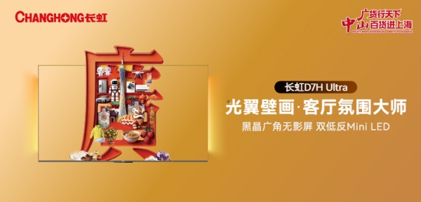 长虹光翼壁画电视D7H Ultra的亮相,不仅是中山制造迈向更广阔市场的一步,更是“科技长虹,创造美好生活”的生动实践。正值年货节期间,欢迎上海市民及广大消费者通过各大电商平台体验氛围家庭影院,一同见证“中山好品”的品质魅力,开启新春家宴。
